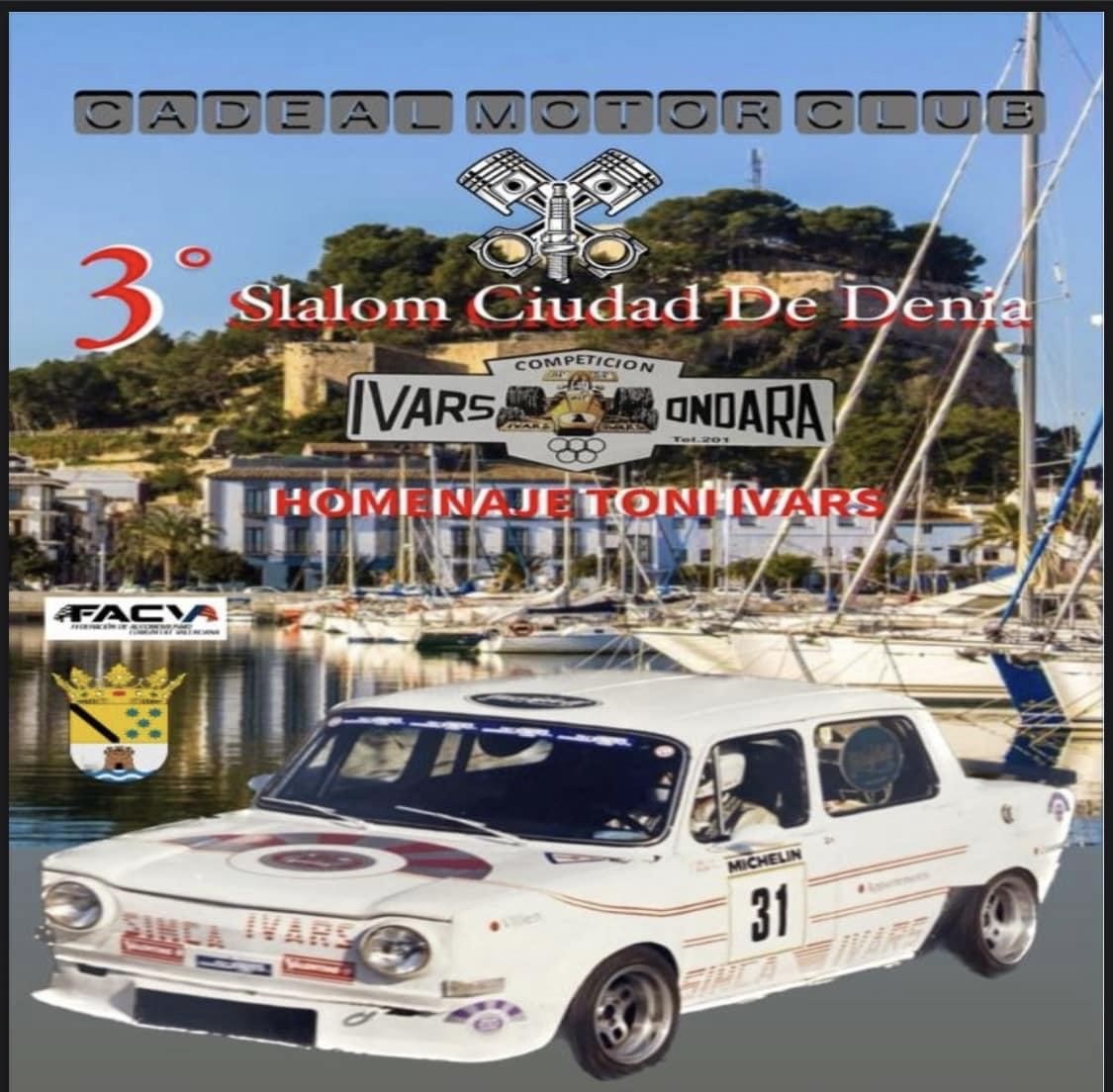 El Cadeal Motor Club celebrará la tercera edición del Slalom Ciudad de Dénia el domingo 11 de diciembre en Torrecremeda. Un campeonato en el que se rendirá homenaje a Toni Ivars “Toniauto” y que contará con la participación de treinta y nueve pilotos. Esta es la última prueba puntuable del Campeonato de la Comunitat Valenciana… Seguir leyendo La tercera edición del Slalom Ciudad de Dénia homenajeará a Toni Ivars